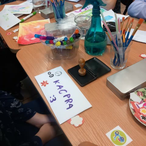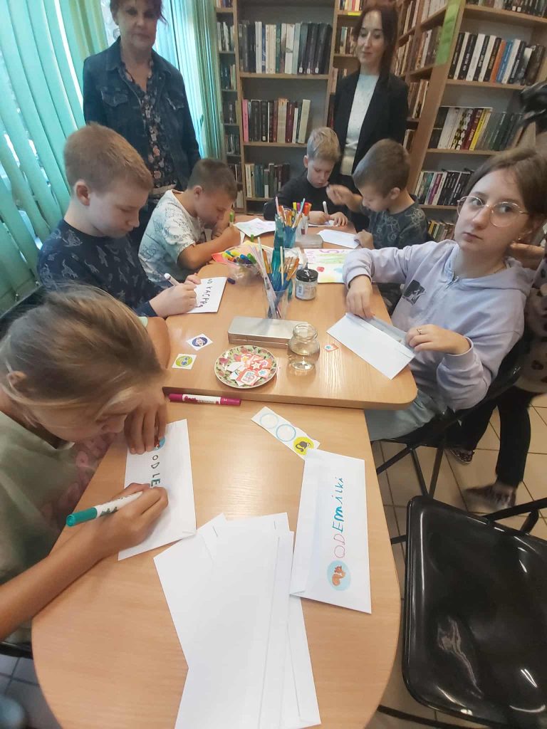 Na pierwszym w tym roku szkolnym spotkaniu warsztatowym, które odbyło się w Bibliotece Kraków Filii nr 5 sąsiadującej z naszą szkołą, przyszli autorzy poznali różnorodne techniki ilustracyjne . Przygotowali samodzielnie wykonane zakładki dla kolegów z sąsiedniej Filii nr 49 , a także nagrali filmiki z pozdrowieniami dla nich. Wysłuchali również opowieści o najbardziej znanych polskich ilustratorach książek dla dzieci , a także przygotowywali temat do swojej własnej książki, którą będą tworzyć już za tydzień podczas kolejnego spotkania. Wtedy pod okiem profesjonalnego ilustratora pani Małgorzaty Zając stworzą własną opowieść . Tematem przewodnim książeczek naszych uczniów są „ Senne opowieści” .