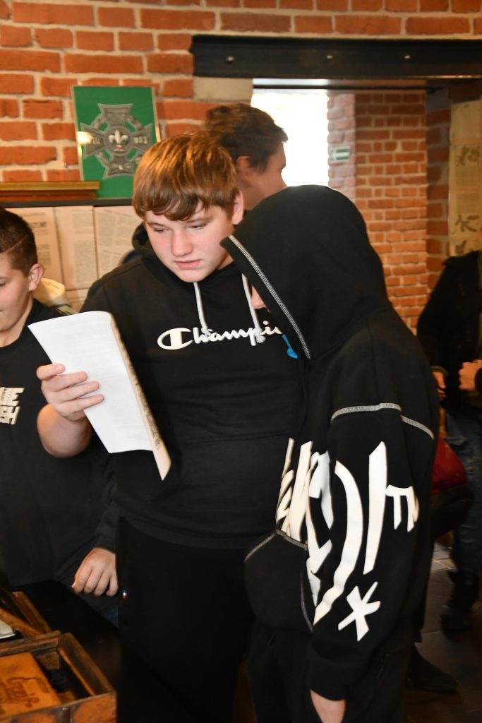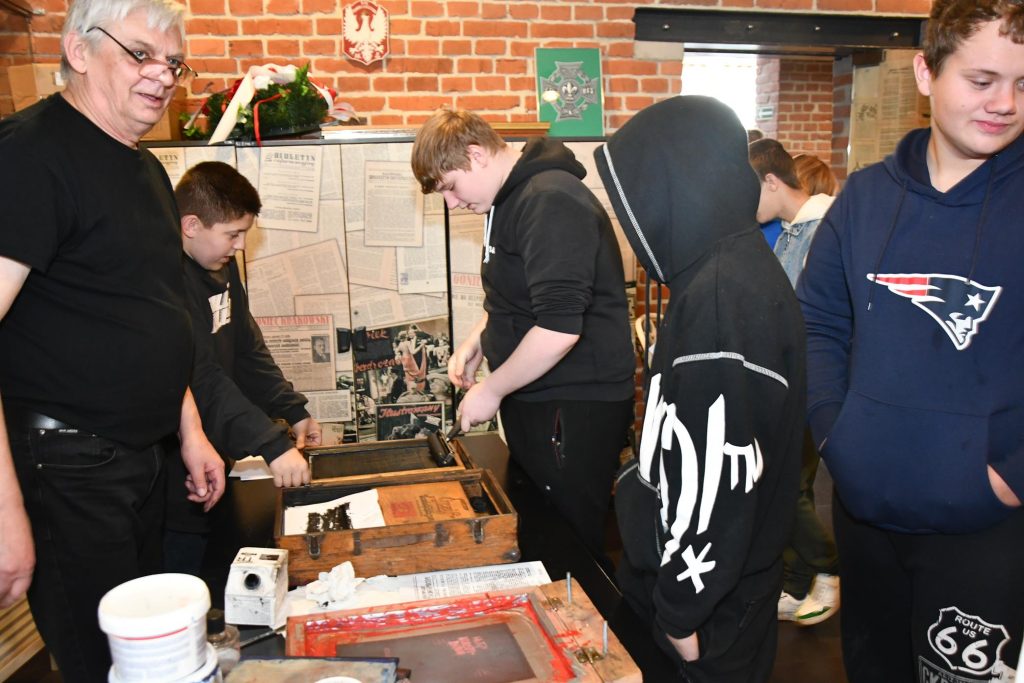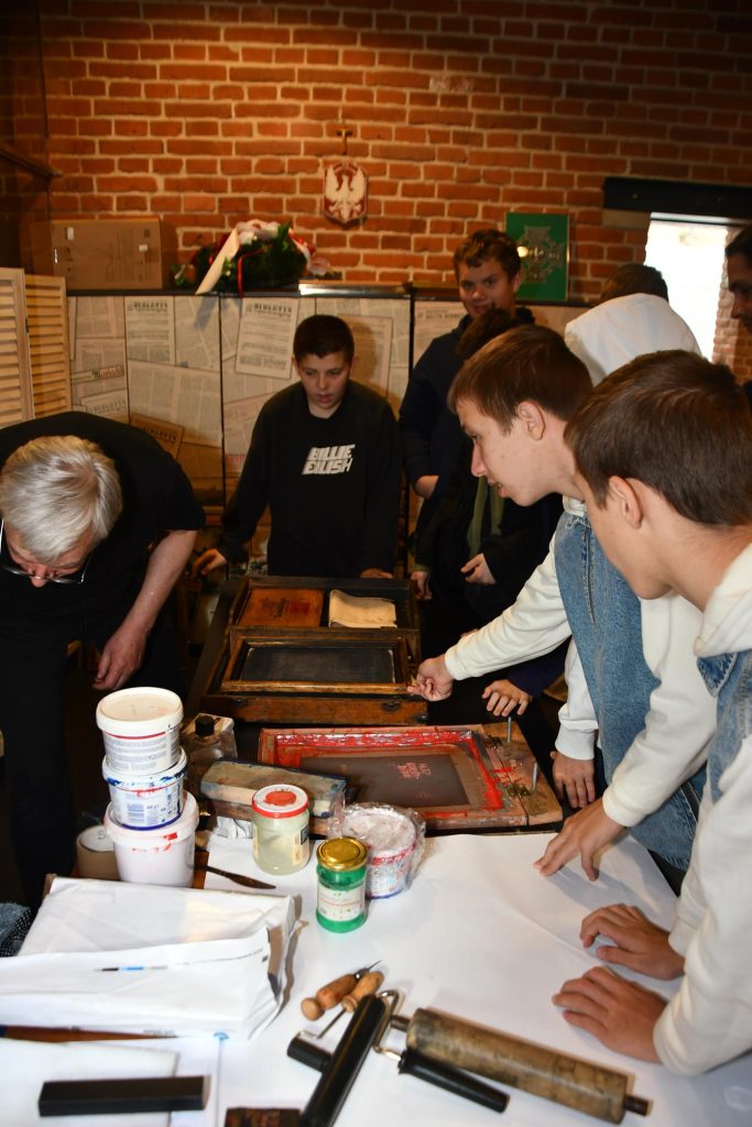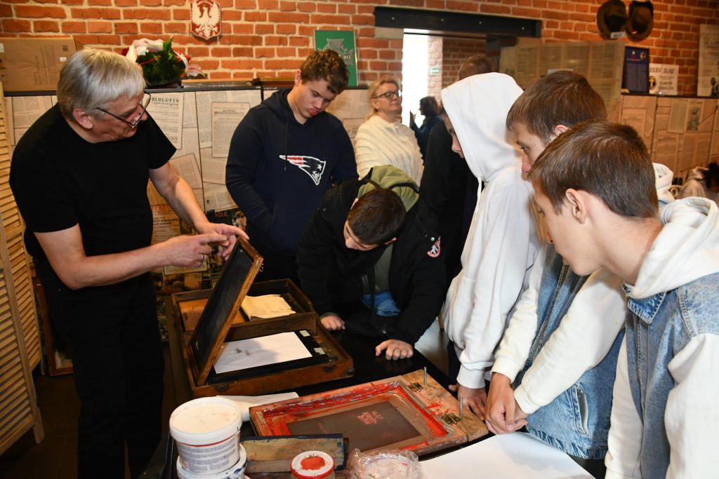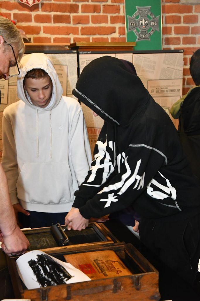 16 października 2025 roku klasy 7A, 7B, 7C oraz 7D wybrały się do Muzeum Armii Krajowej im. gen. Emila Fieldorfa „Nila”. Uczniowie mogli korzystać z wiedzy Pani Kasi, która prowadziła nas przez historię okupowanej przez Niemców Polski. Dowiedzieliśmy się o Polskim Państwie Podziemnym i Armii Krajowej, sprawdzaliśmy ile waży karabin i czy wygodny był powstańczy hełm, podrabialiśmy niemieckie dokumenty i zwiedzaliśmy wystawę poświęconą krakowskim tramwajarzom. Na jednej z wystaw zobaczyliśmy budynek naszej szkoły – to właśnie na Lubomirskiego uczęszczał na lekcje Emil Fieldorf. Po zakończeniu zwiedzania poszliśmy na kolejną część zajęć. Tym razem zostaliśmy drukarzami. Pod okiem pana Leszka poznawaliśmy różne techniki drukarskie, robiliśmy stemple i większość z nas wydrukowała swoją podziemną ulotkę.