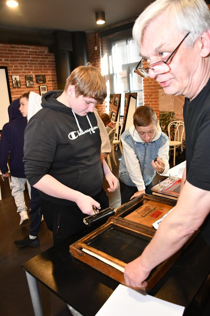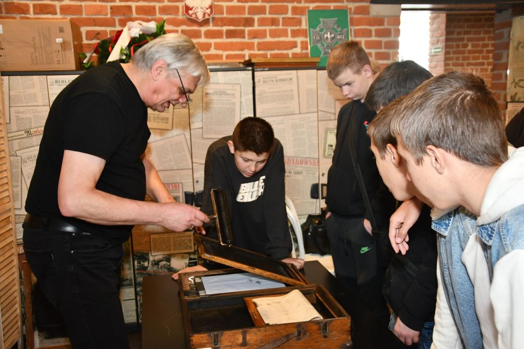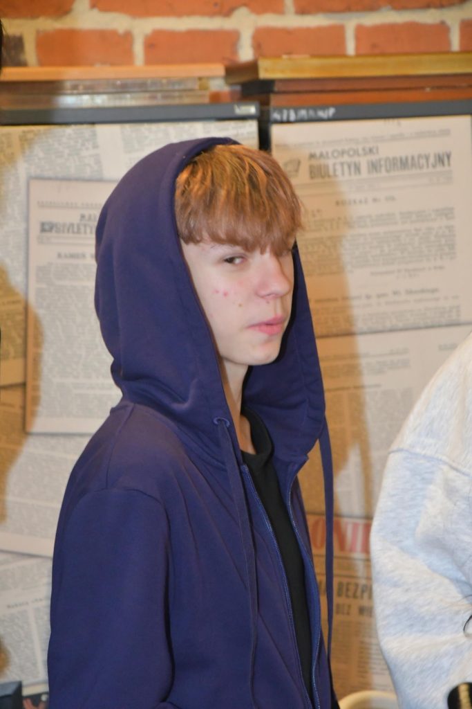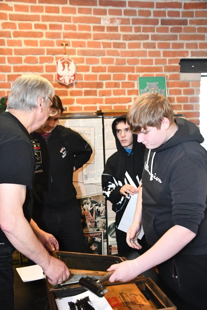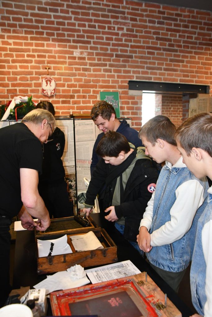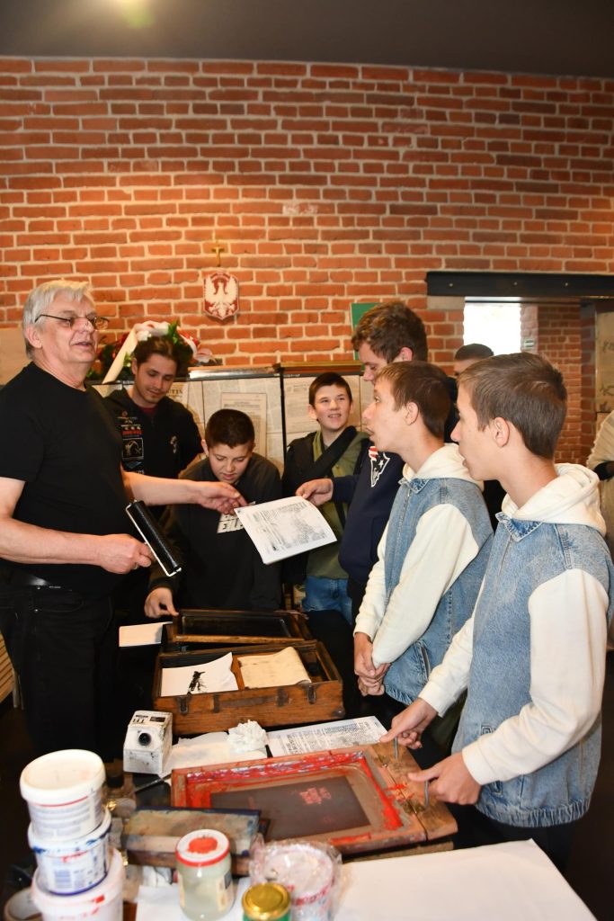 16 października 2025 roku klasy 7A, 7B, 7C oraz 7D wybrały się do Muzeum Armii Krajowej im. gen. Emila Fieldorfa „Nila”. Uczniowie mogli korzystać z wiedzy Pani Kasi, która prowadziła nas przez historię okupowanej przez Niemców Polski. Dowiedzieliśmy się o Polskim Państwie Podziemnym i Armii Krajowej, sprawdzaliśmy ile waży karabin i czy wygodny był powstańczy hełm, podrabialiśmy niemieckie dokumenty i zwiedzaliśmy wystawę poświęconą krakowskim tramwajarzom. Na jednej z wystaw zobaczyliśmy budynek naszej szkoły – to właśnie na Lubomirskiego uczęszczał na lekcje Emil Fieldorf. Po zakończeniu zwiedzania poszliśmy na kolejną część zajęć. Tym razem zostaliśmy drukarzami. Pod okiem pana Leszka poznawaliśmy różne techniki drukarskie, robiliśmy stemple i większość z nas wydrukowała swoją podziemną ulotkę.